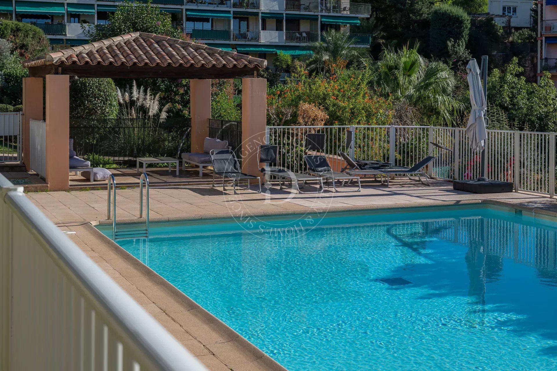 Nestled within a highly sought-after and secure residence with swimming pool and pool house, this elegant 105 m² (Carrez law) duplex apartment offers the perfect blend of comfort and refinement.