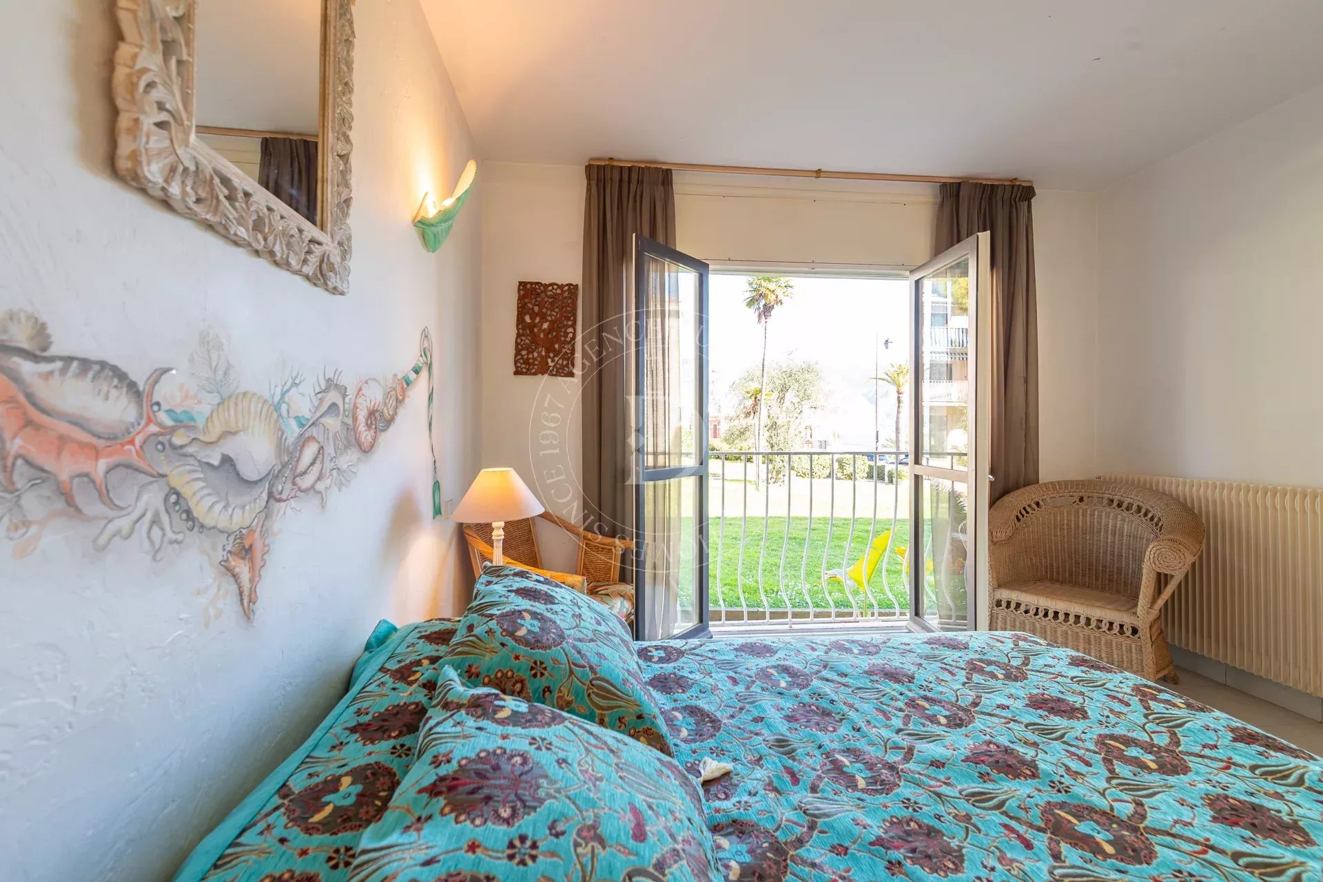 In a residence close to the village and beaches, there is a two bedrooms apartment on groundfloor with nice sea view.