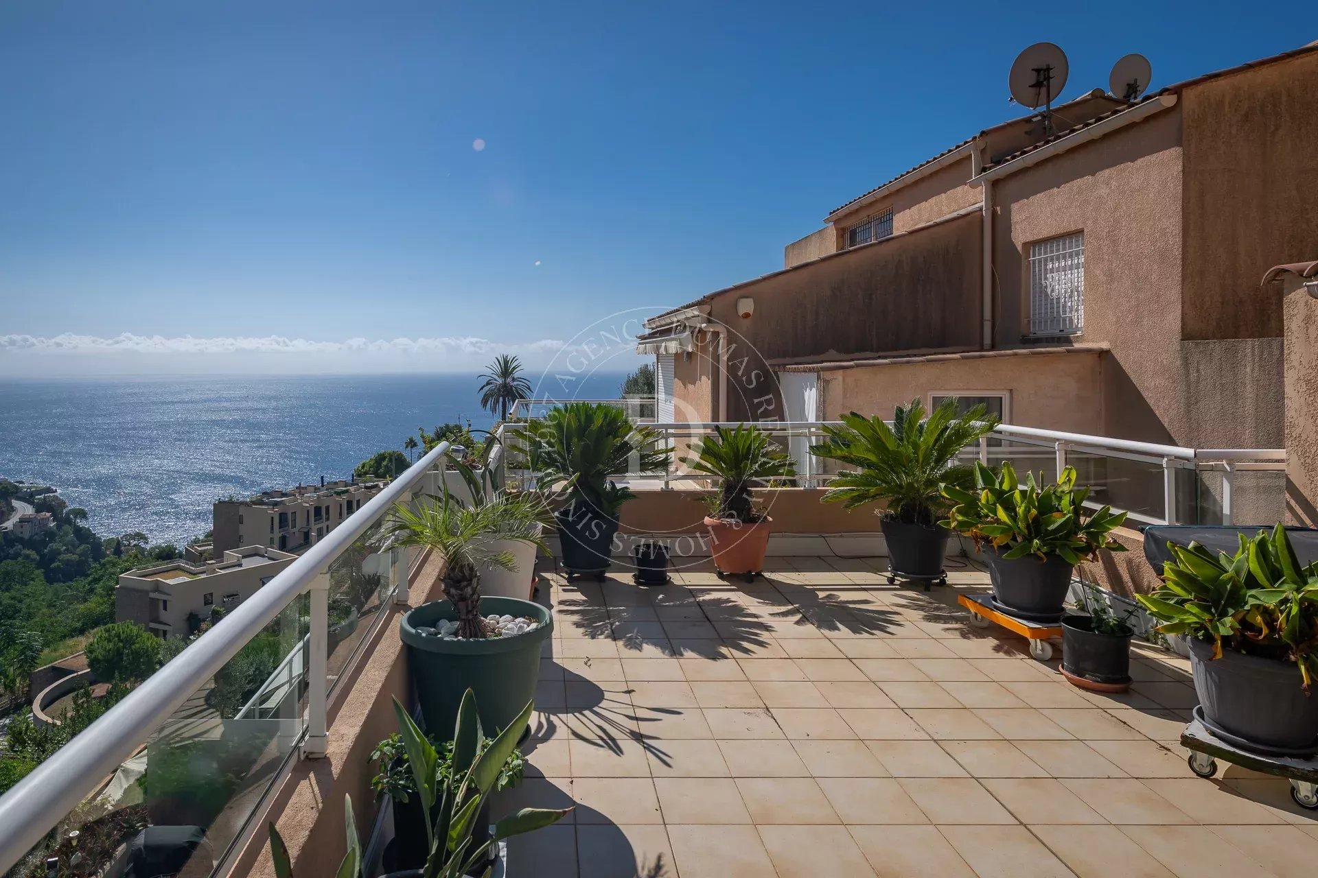 Immerso in un ambiente residenziale e tranquillo a Saint-Laurent d’Eze, a soli 10 minuti da Monaco, Beaulieu-sur-Mer e dalle spiagge, questo splendido appartamento all’ultimo piano conquista per i suoi ampi volumi, gli spazi esterni unici e la vista libera sul mare e sul verde circostante.