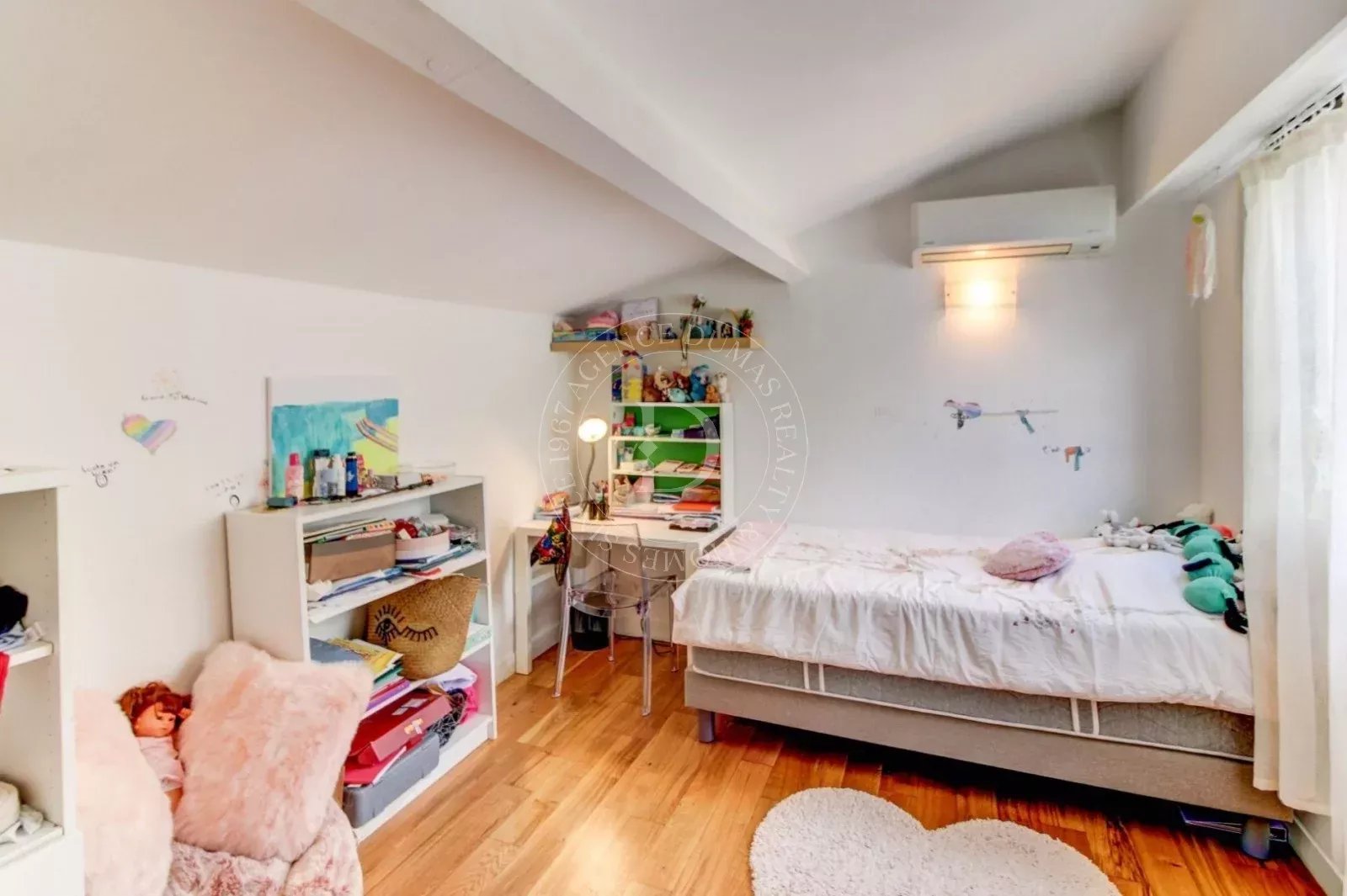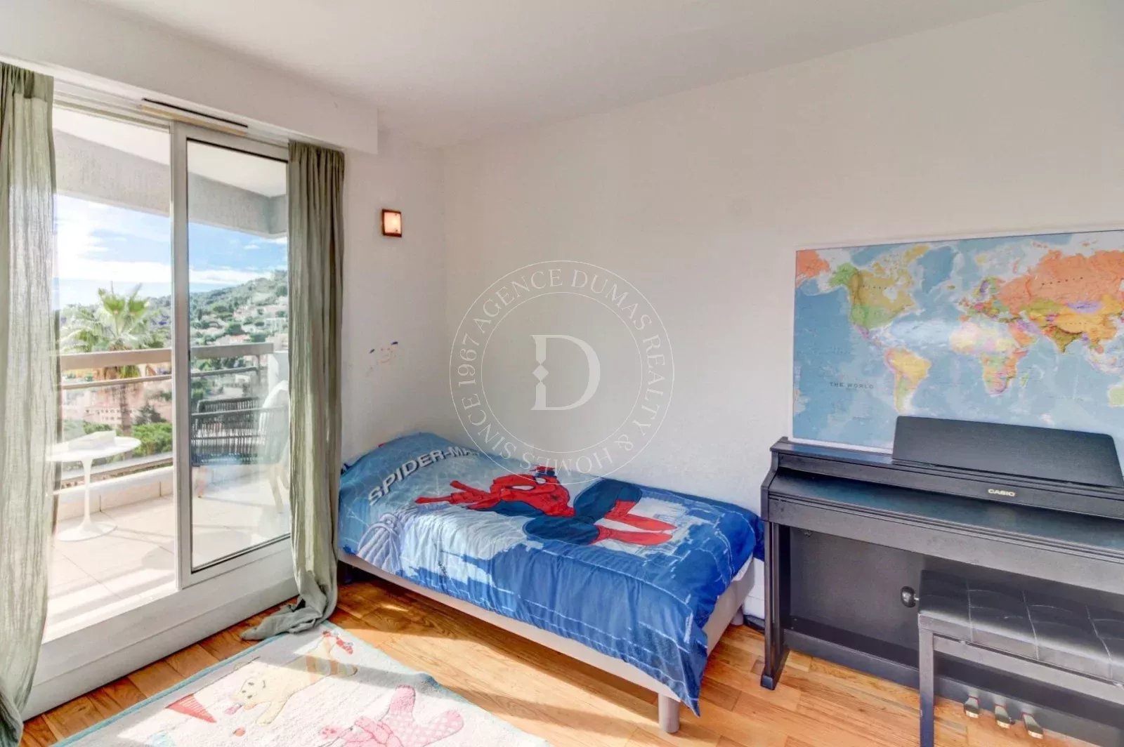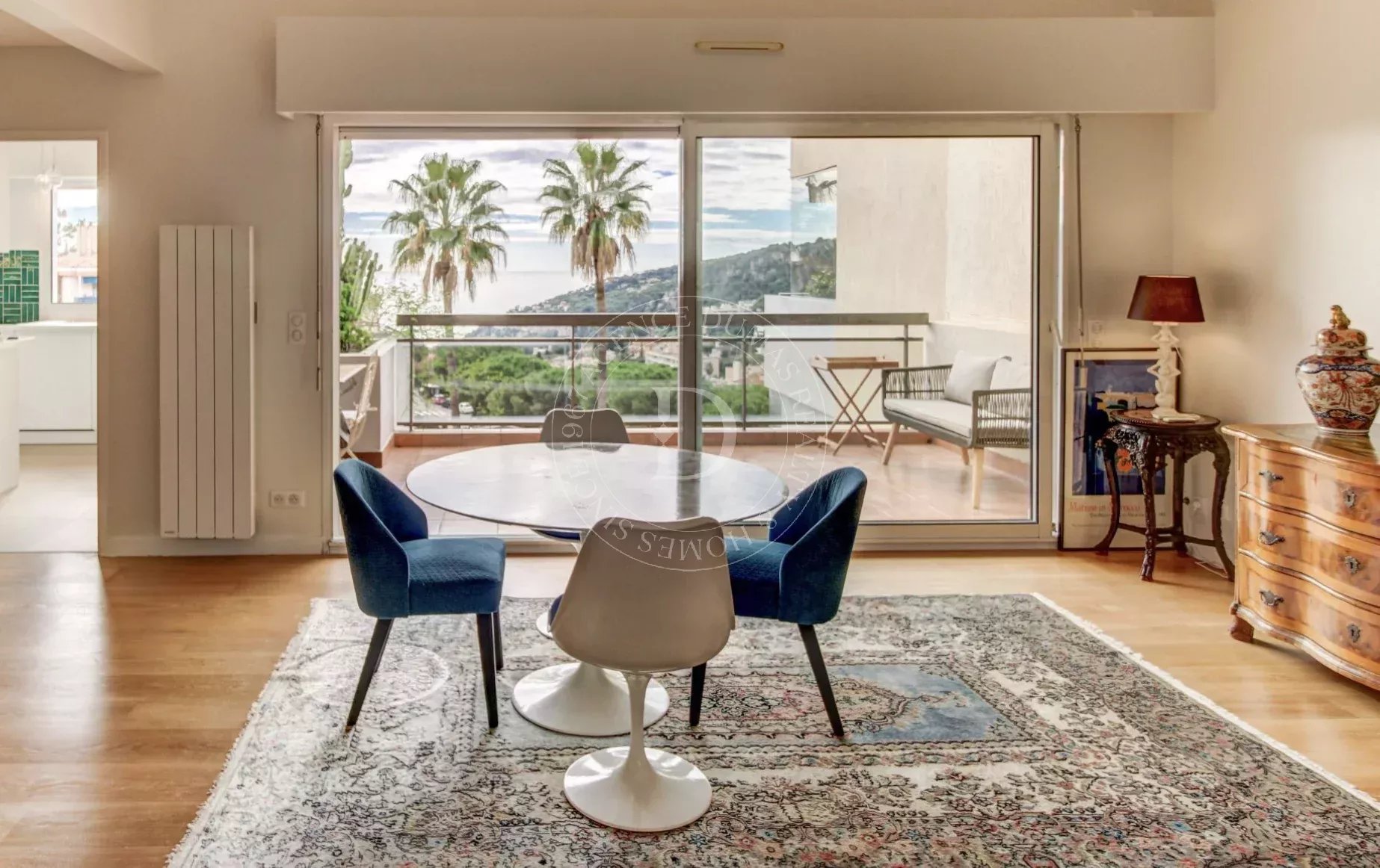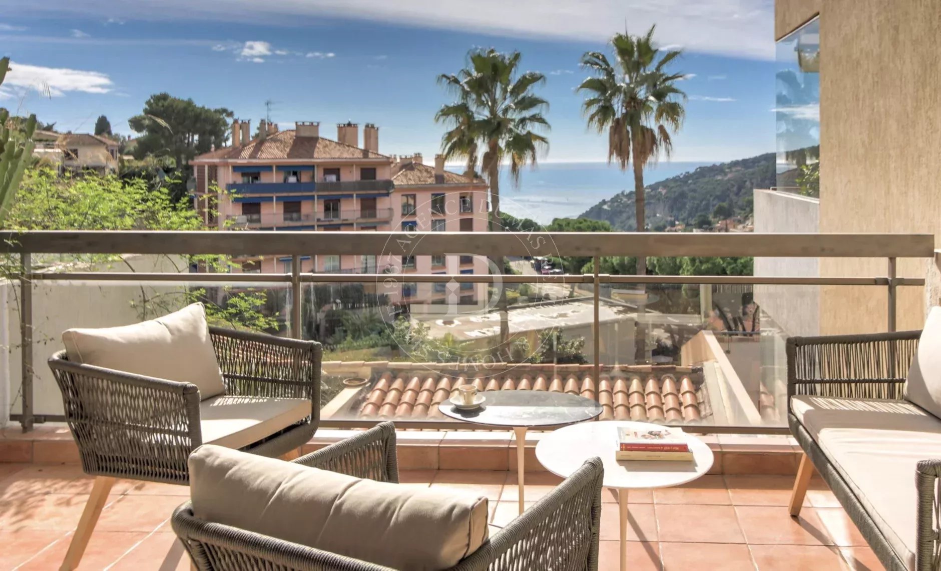 Grazie alla sua esposizione a sud, gode di una luminosità eccezionale e di una magnifica vista panoramica sul mare e sul Mont Alban. La distribuzione su due livelli conferisce all’immobile il fascino e la sensazione di vivere in una villa indipendente.