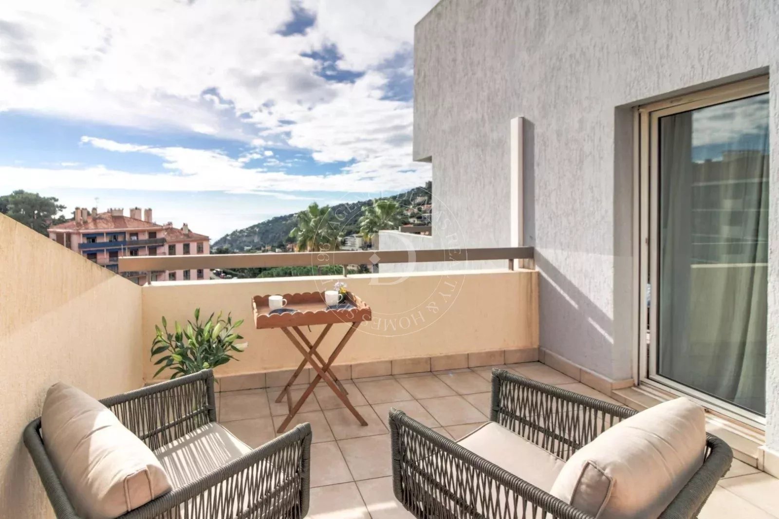 Situata al confine tra Nizza e Villefranche-sur-Mer, a pochi minuti da Monaco tramite la Moyenne Corniche, la residenza è vicina a negozi e scuole.