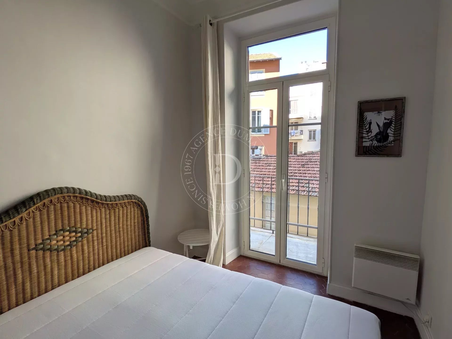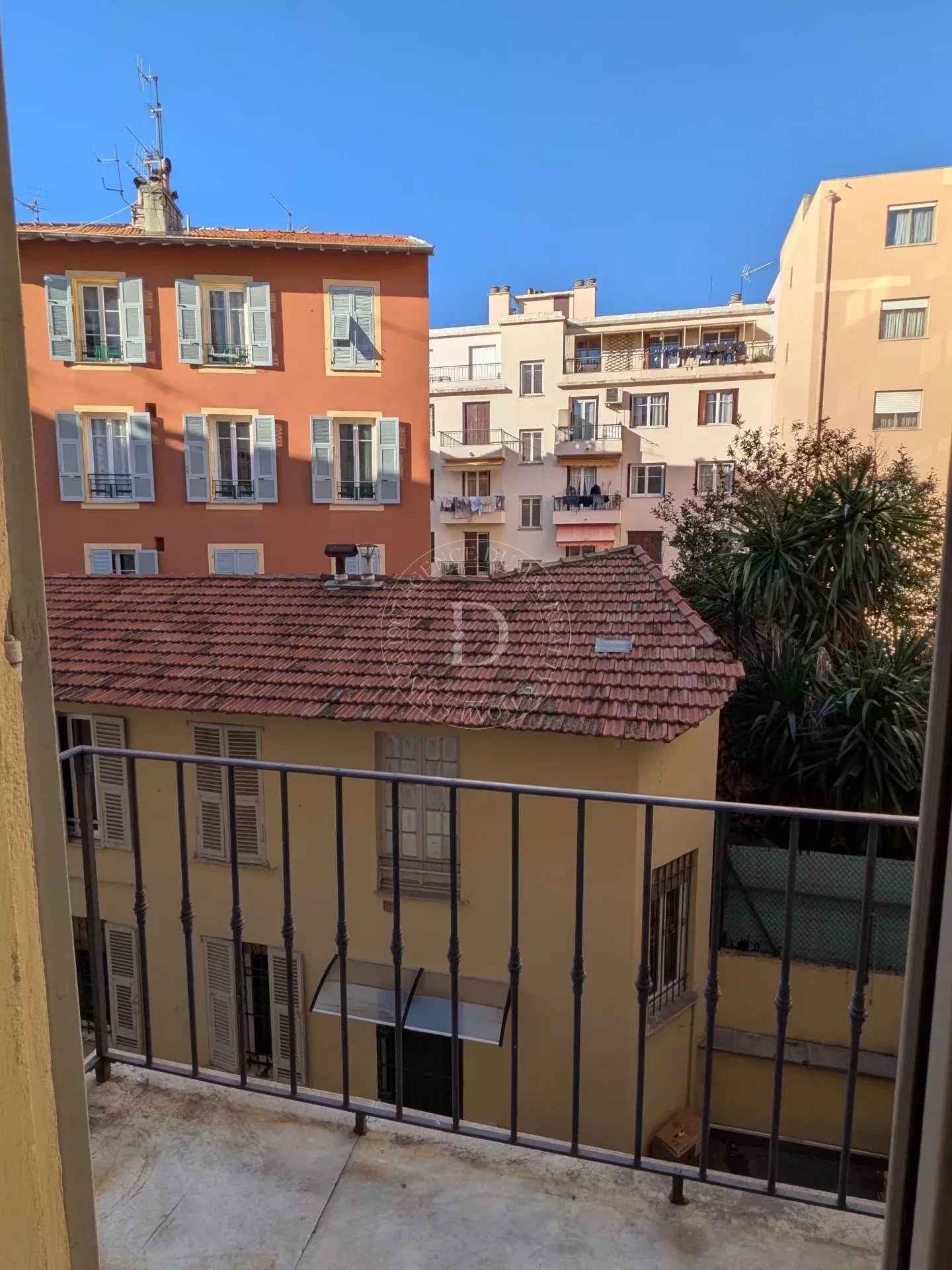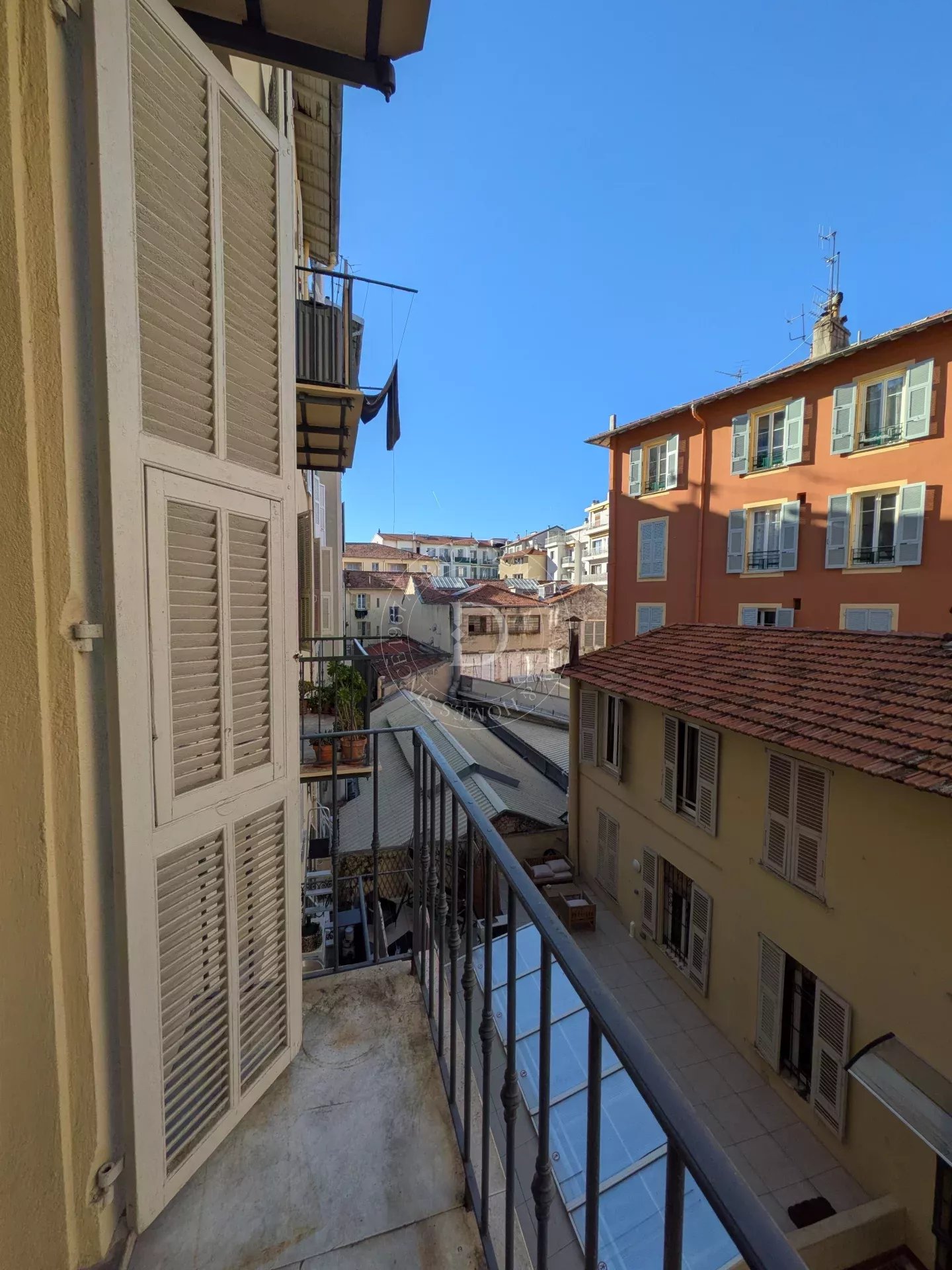 Proche du port de Nice, au 3ème étage ( sans ascenseur) très joli appartement traversant avec un balcon donnant sur une cour bien exposée et au calme.