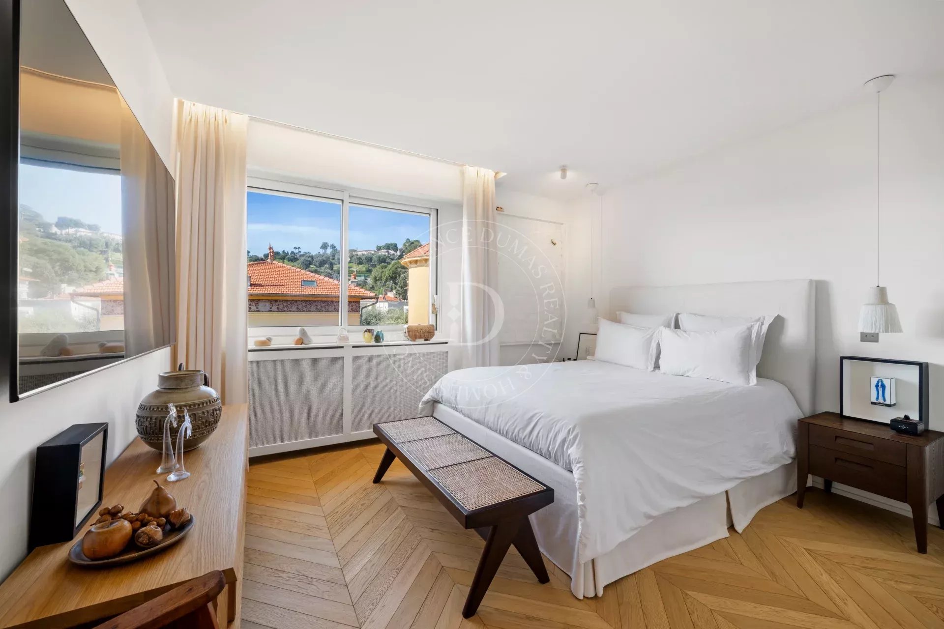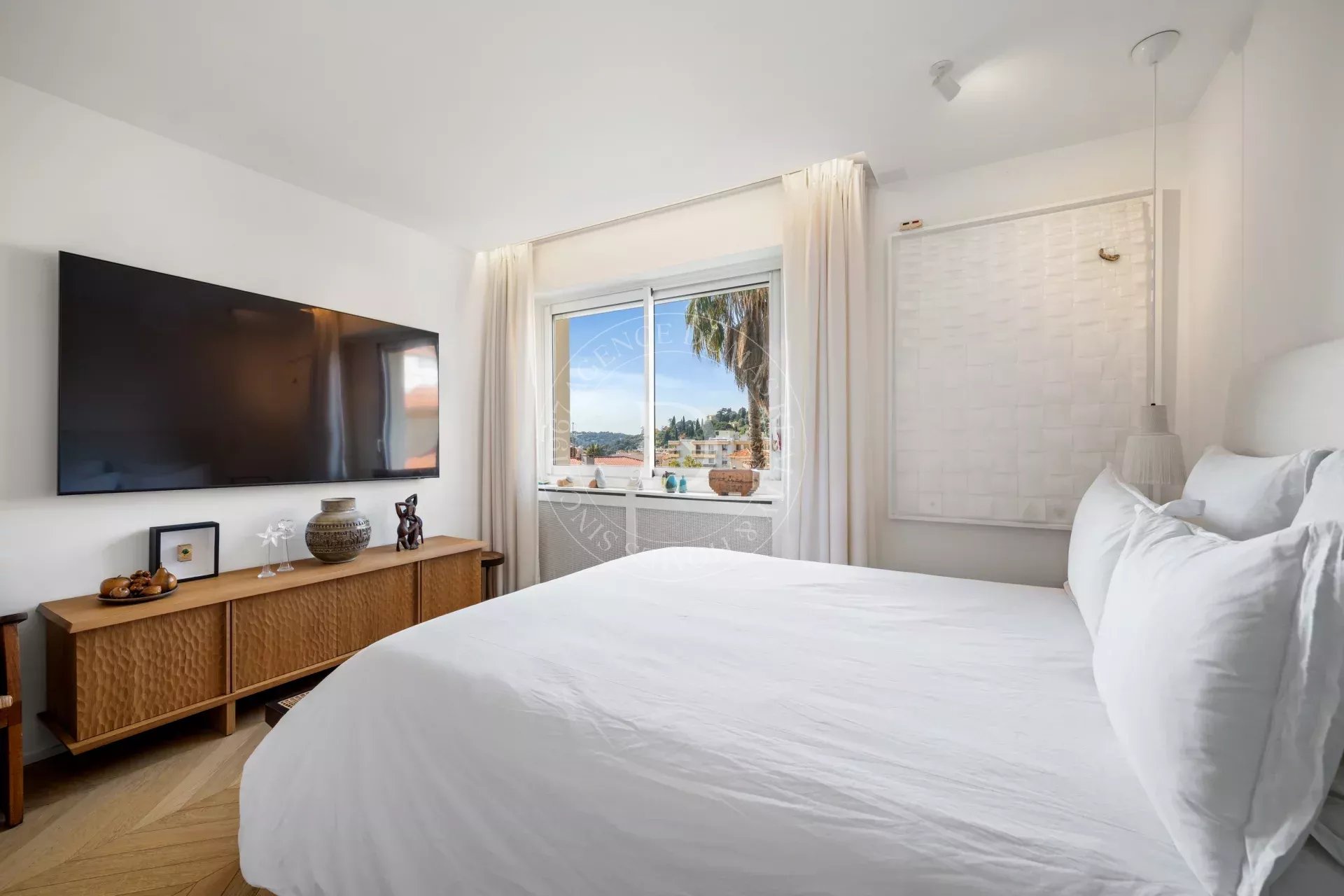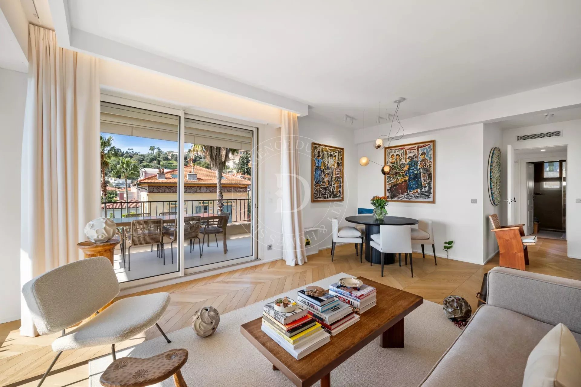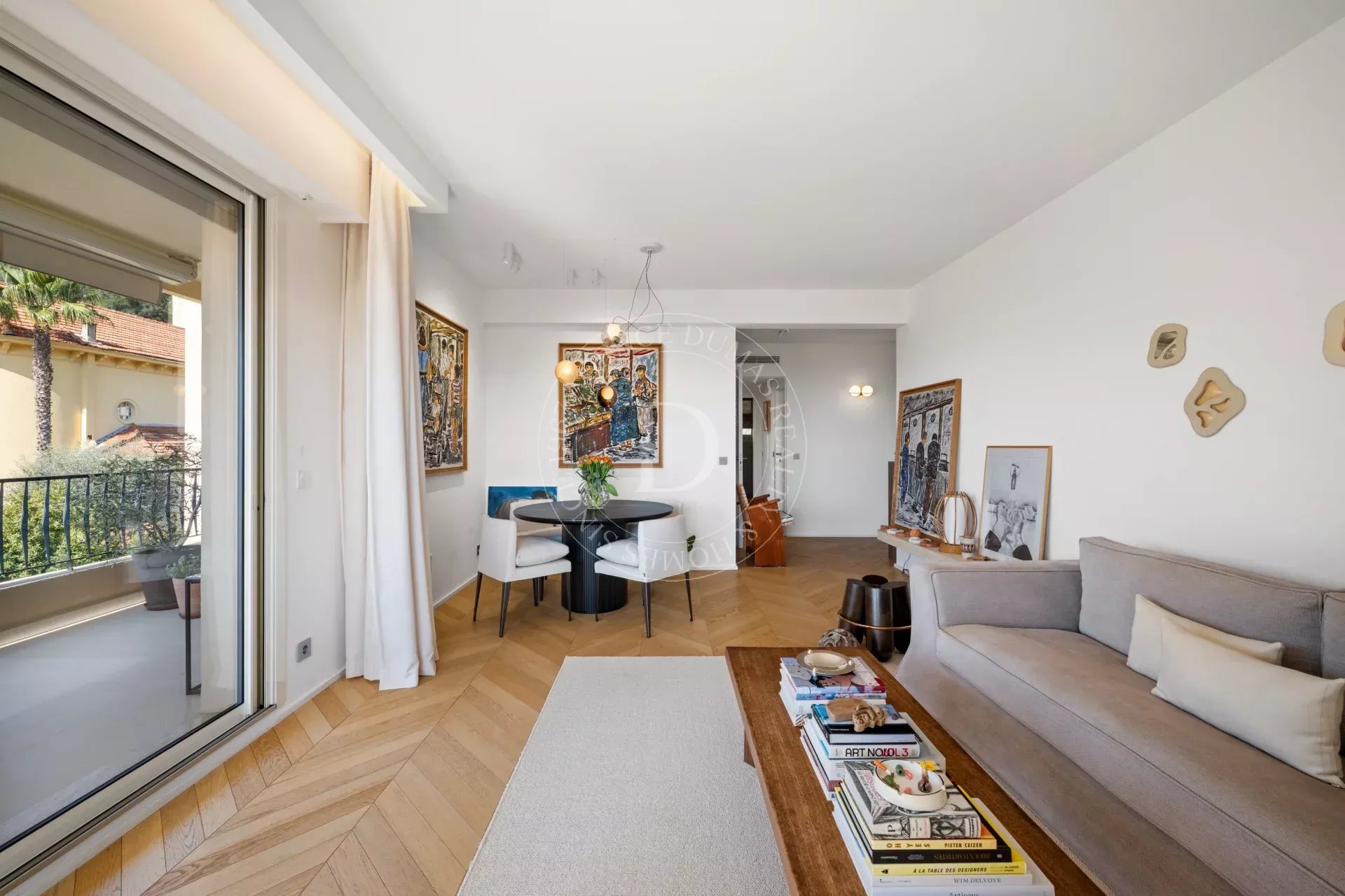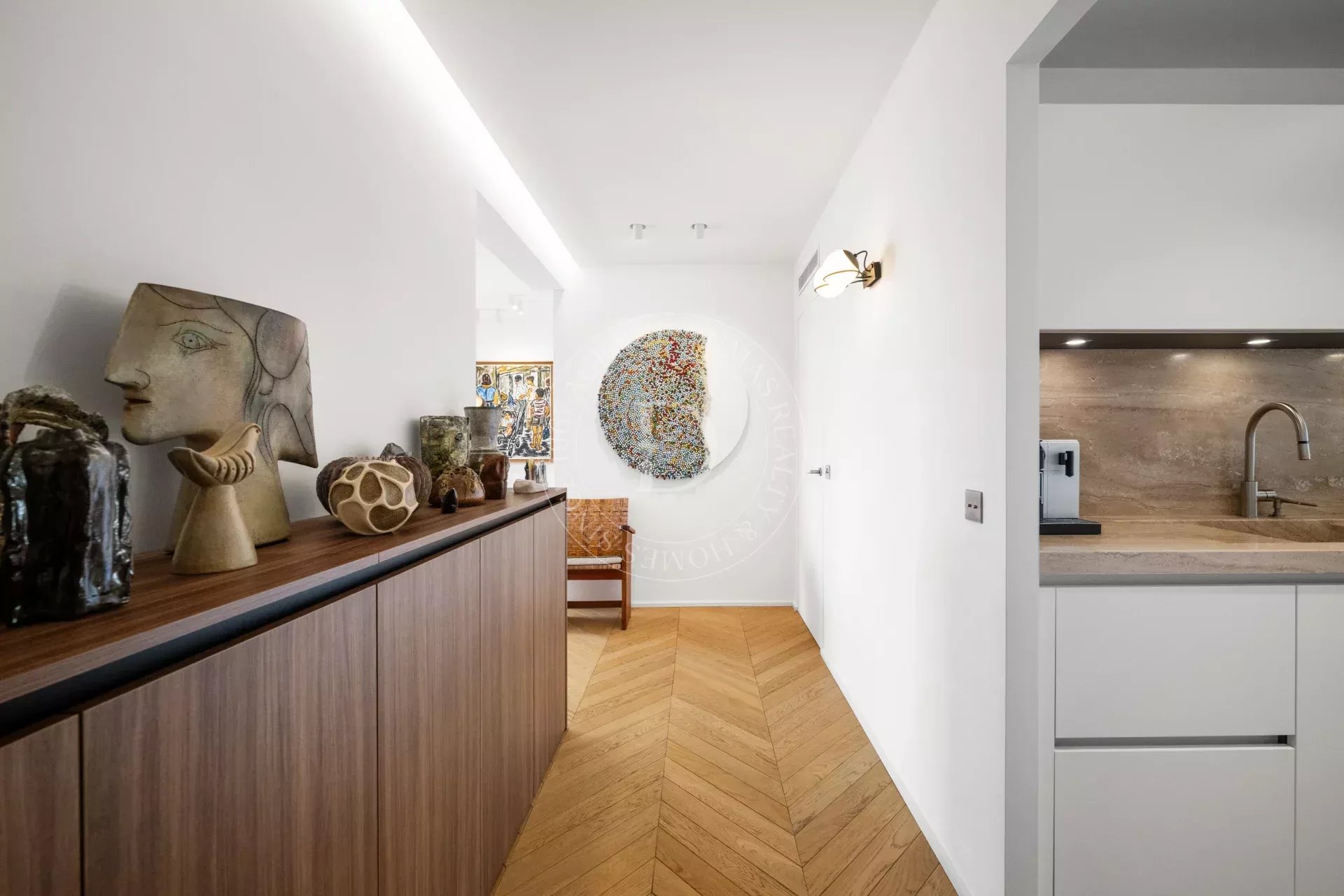 Rénové avec une exigence remarquable, l’appartement révèle un sens du détail subtil : parquet point de Hongrie, lignes épurées, harmonie des matières et des teintes.