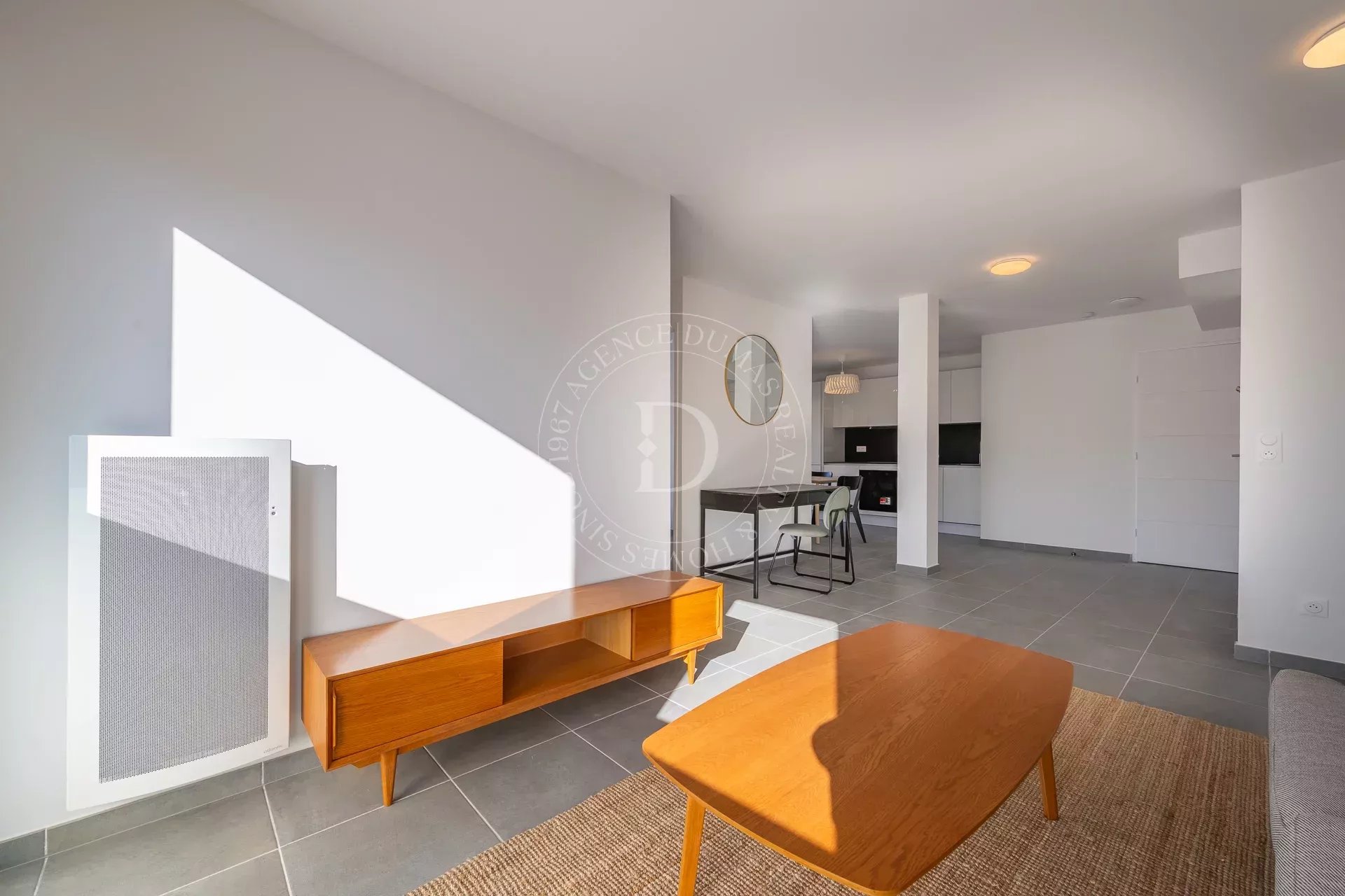 L’espace intérieur se compose d’un vaste séjour lumineux ouvrant sur un balcon agréable, parfait pour profiter des douces soirées niçoises. La cuisine ouverte permet une belle convivialité, tandis que les deux chambres offrent calme et intimité.