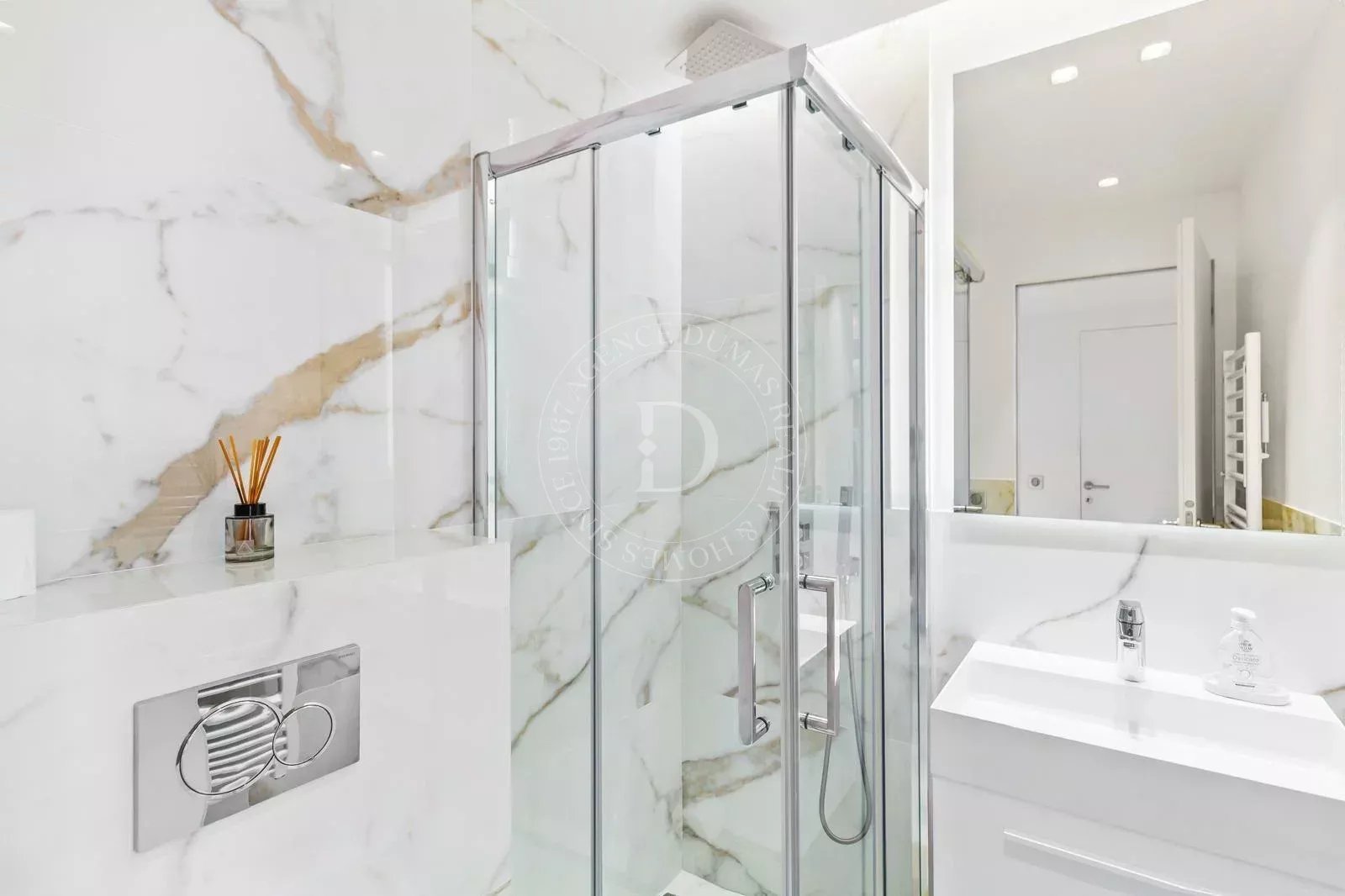 L’espace nuit comprend deux chambres, dont l’une bénéficie d’une magnifique vue mer, offrant un cadre apaisant et exclusif. Deux salles d’eau viennent compléter l’ensemble, apportant fonctionnalité et confort pour une résidence principale comme pour un pied-à-terre de prestige.
