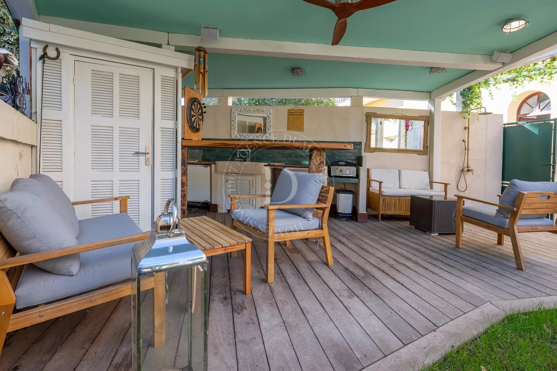 À l’extérieur, le jardin soigneusement aménagé accueille une belle piscine, véritable invitation à la détente. Une cuisine d’été dans le pool house permet de profiter pleinement des beaux jours et des belles soirées estivales, tandis qu’un espace gym vient compléter les prestations de confort et de bien-être.