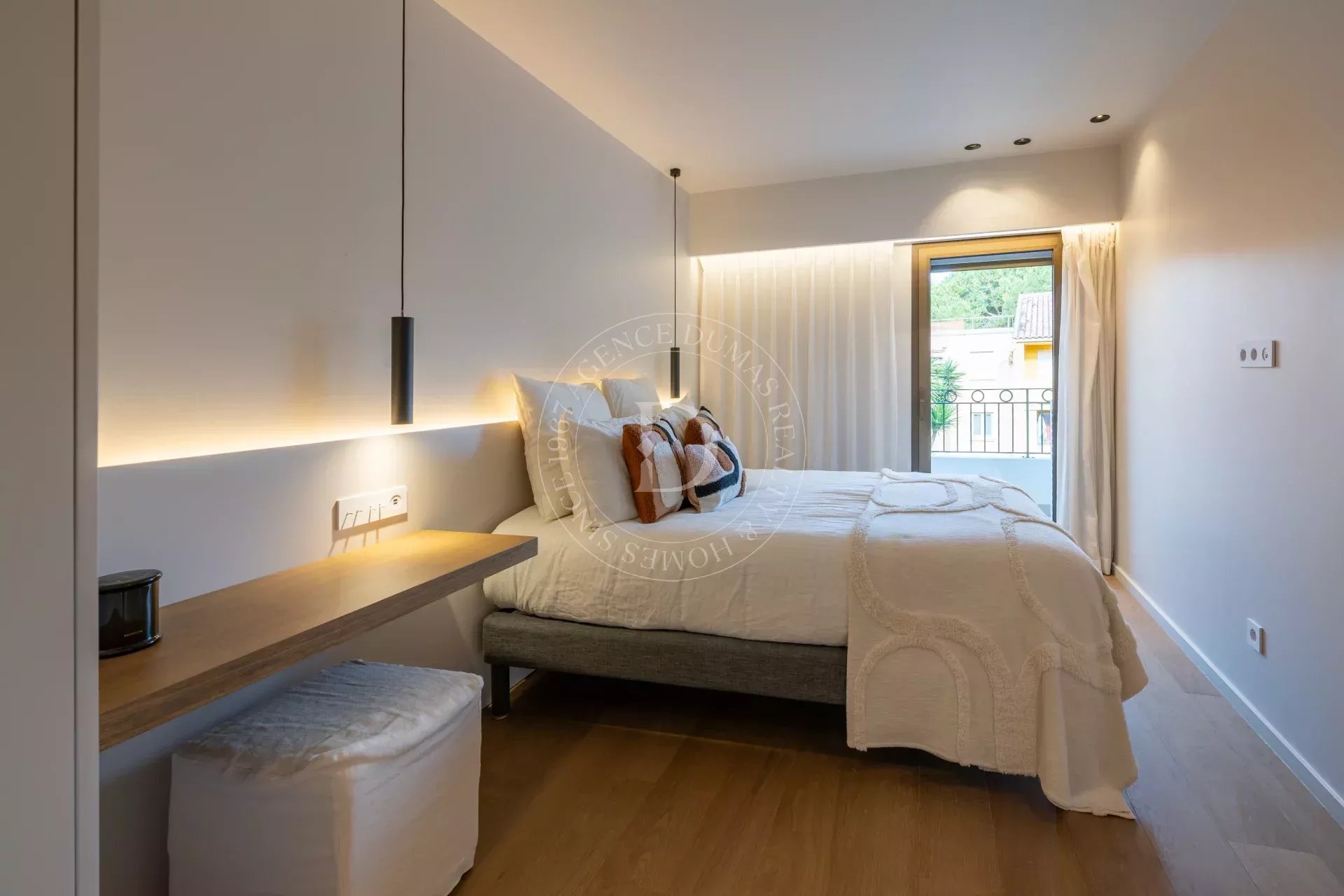 В самом сердце престижного поселка Сен-Жан-Кап-Ферра расположен этот исключительный дуплекс площадью 101,38 м² по закону Каррез — 4 комнаты, занимающий два последних этажа роскошной резиденции с лифтом.