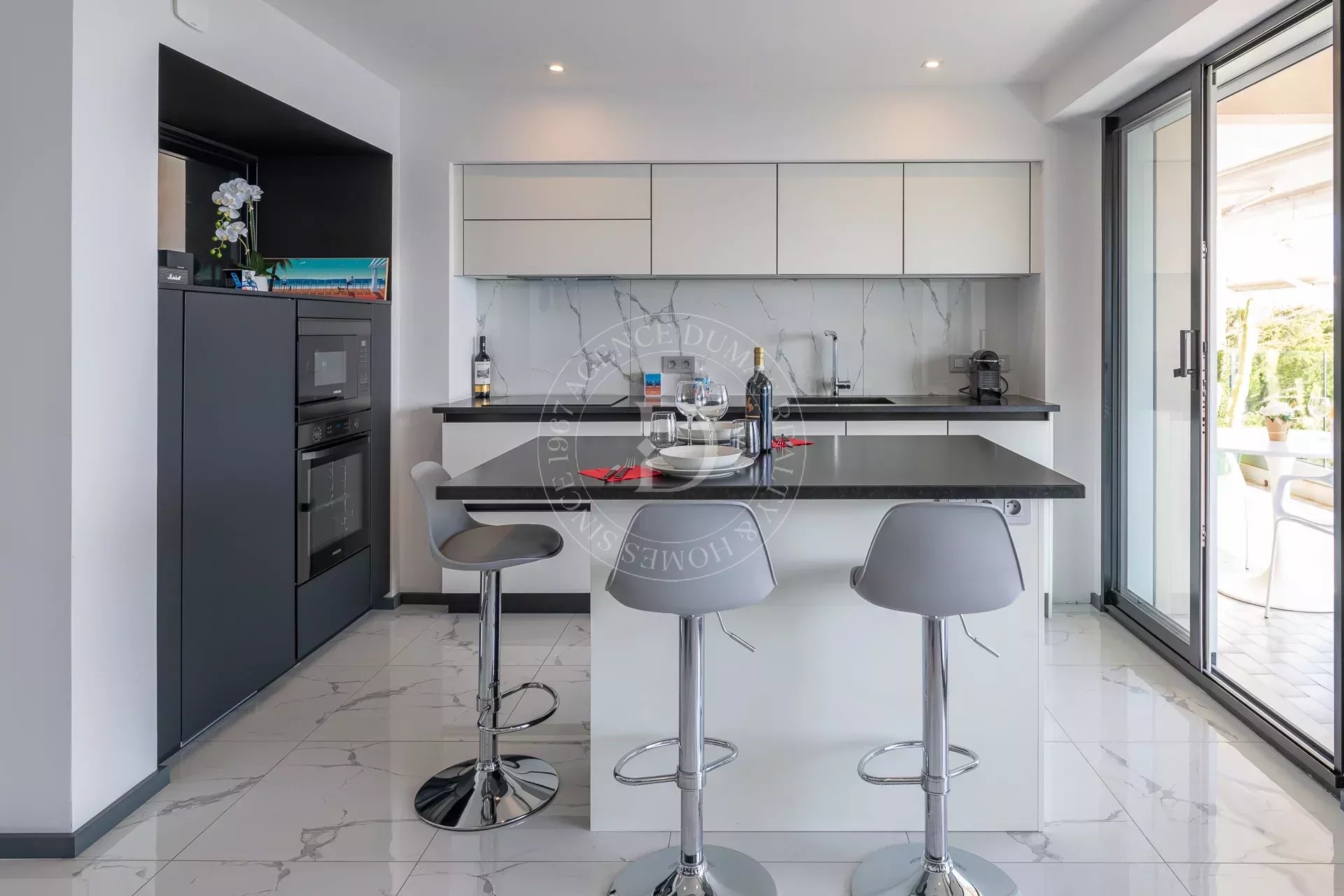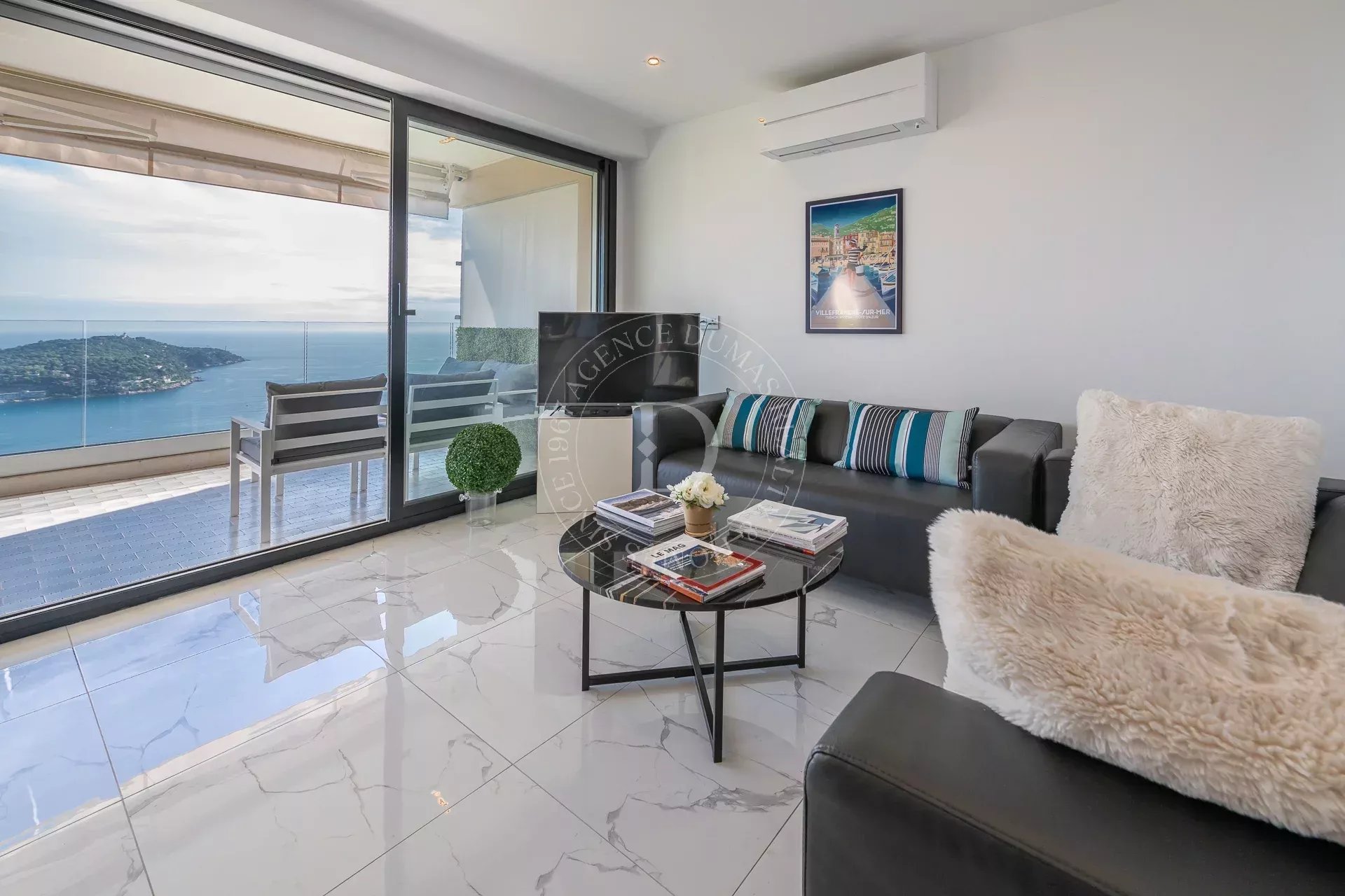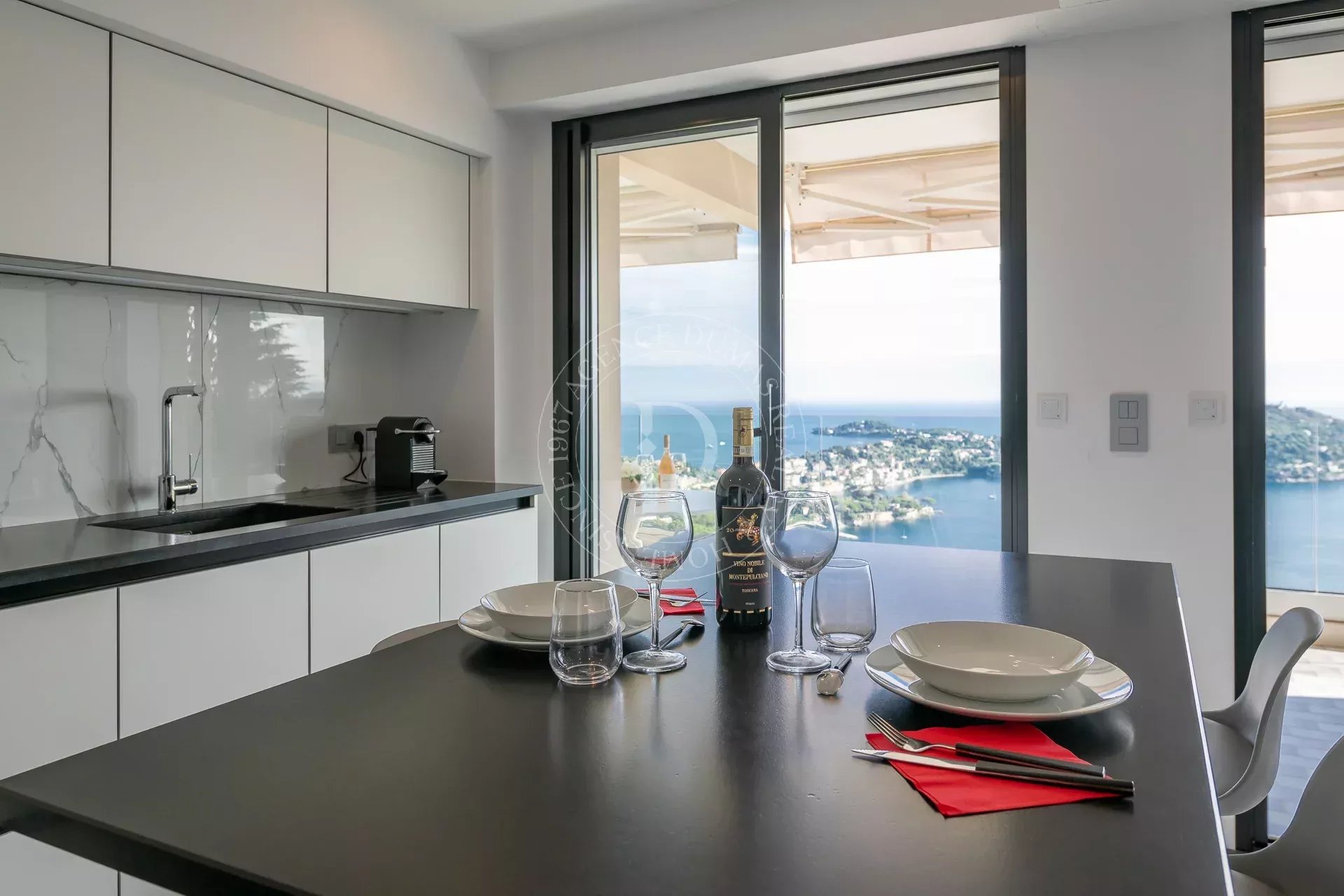 Она обладает исключительным расположением. Состоит из гостиной с открытой кухней и спальни, которая выходит прямо на террасу площадью 20 м² с потрясающим панорамным видом на бухту Вильфранша.