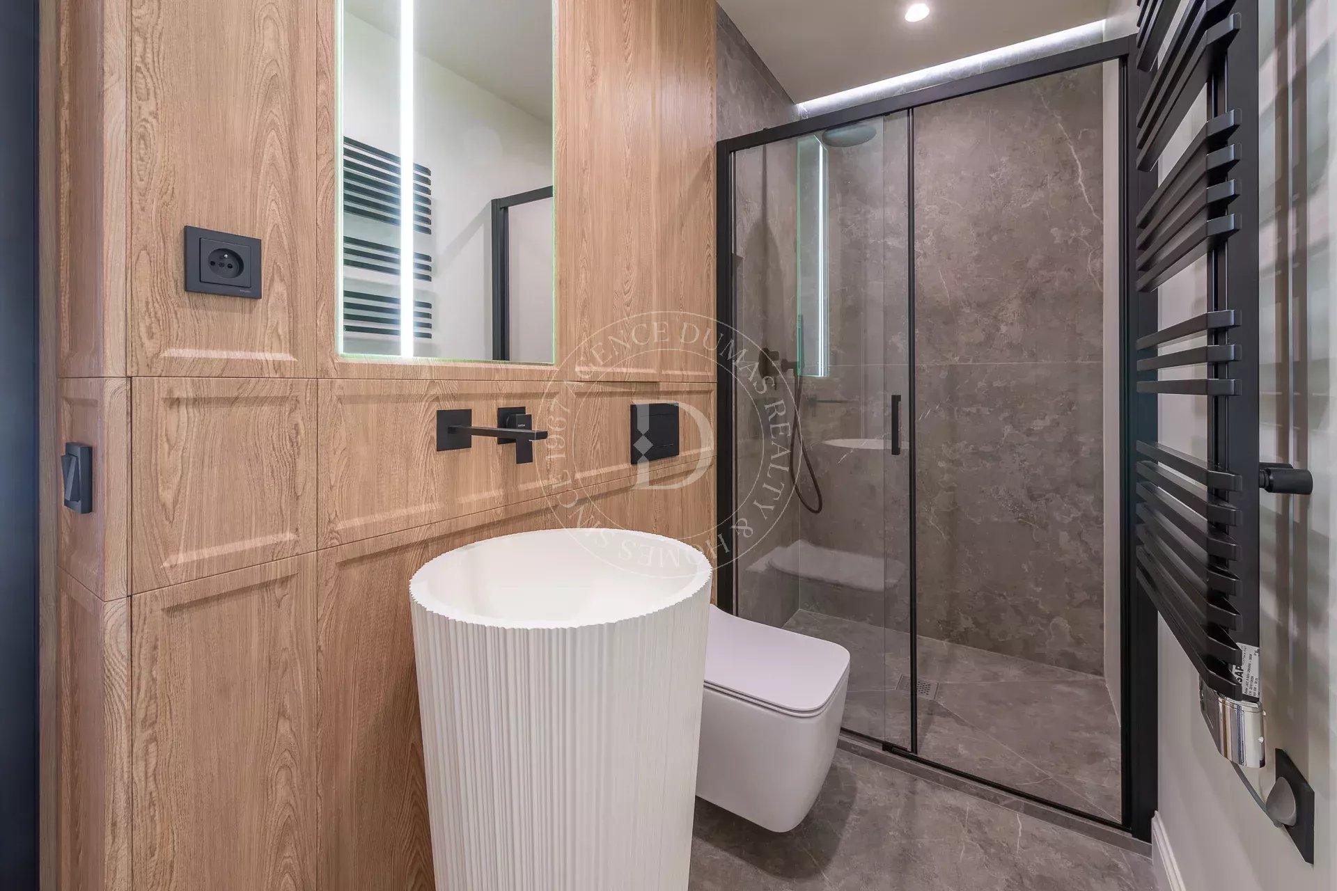 Ночная зона включает две изысканные спальни, каждая из которых имеет собственную ванную комнату, обеспечивая уединение и комфорт. Каждый элемент этой квартиры продуман до мелочей, чтобы создать гармоничное и элегантное пространство.
